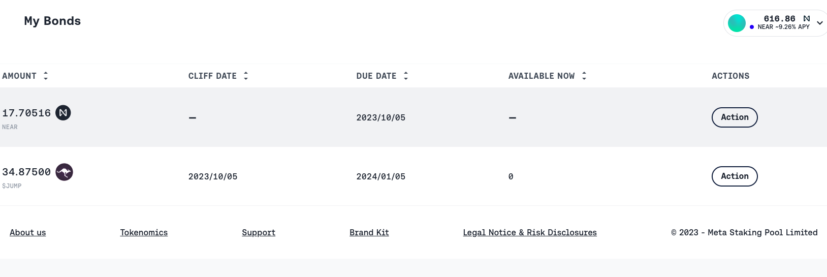 1. First Bond: In NEAR tokens. This amount corresponds to the valuation in NEAR of the stNEAR locked at the end of the Fund period.